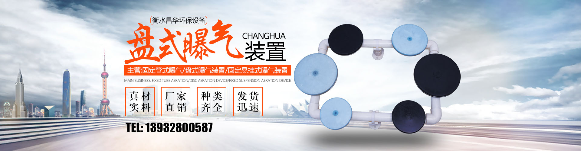 衡水昌华环保设备制造有限公司(原衡水市桃城区慈爱源污水处理曝气设备厂)专业生产环保设备及其配件。我公司生产各种型号微孔曝气管、微孔曝气盘、聚氨脂曝气管、高密度聚乙烯曝气管、无阻塞大通气量旋流曝气器。我公司生产的微孔膜曝气管(膜片)、曝气盘(膜片)、均采用美国、德国和荷兰技术的高强度、高弹性、高抗撕裂、强抗老化的硅橡胶、三元乙丙橡胶和聚氨酯。曝气管(盘)骨架均采用高强度、抗老化的ABS、增强聚丙、UPVC等工程塑料,坚固耐用。